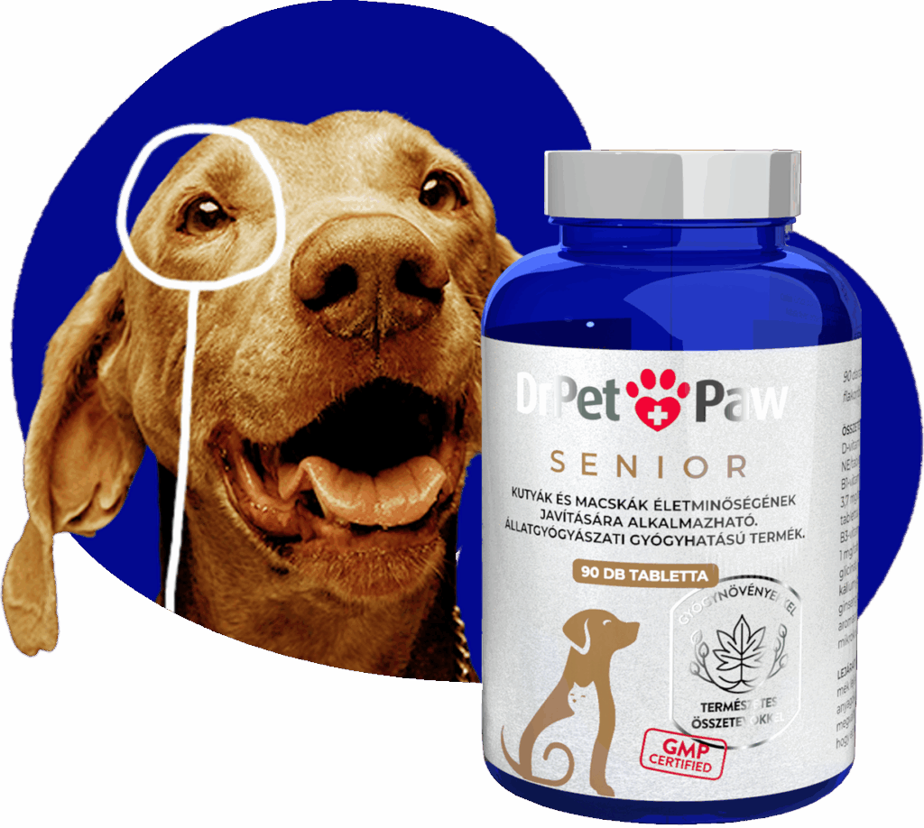 Komplex táplálékkiegészítő idős kutyáknak és macskáknak az immunrendszer, csontok és életerő támogatásáért, vitaminokkal és nyomelemekkel.
